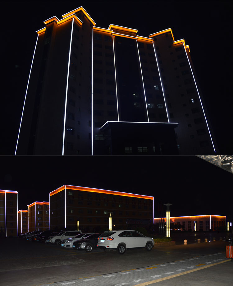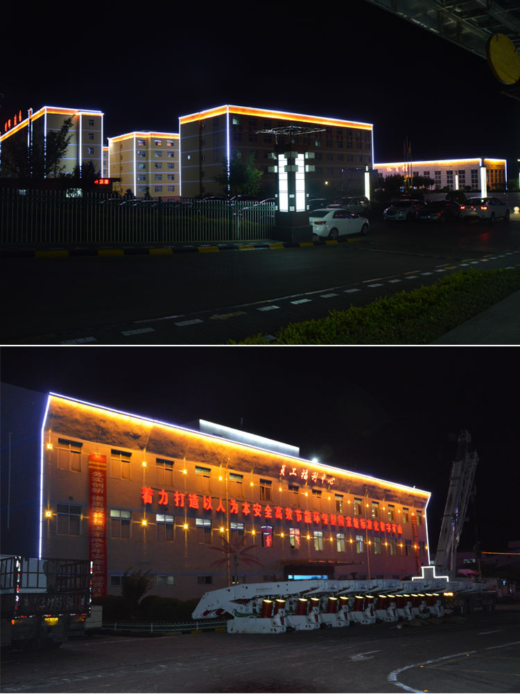 簡(jiǎn)介—— 銅川建新煤化是我公司承接的廠區(qū)亮化工程之一,該項(xiàng)目整體從設(shè)計(jì)到施工,全程有我公司承擔(dān)負(fù)責(zé),設(shè)計(jì)根據(jù)甲方的要求,采用簡(jiǎn)潔明了的線條勾勒輪廓和打亮為主。在廠區(qū)主要的辦公樓、餐廳、員工活動(dòng)中心、員工福利中心、員工宿舍樓等員工主要活動(dòng)的場(chǎng)所樓進(jìn)行重點(diǎn)亮化。
